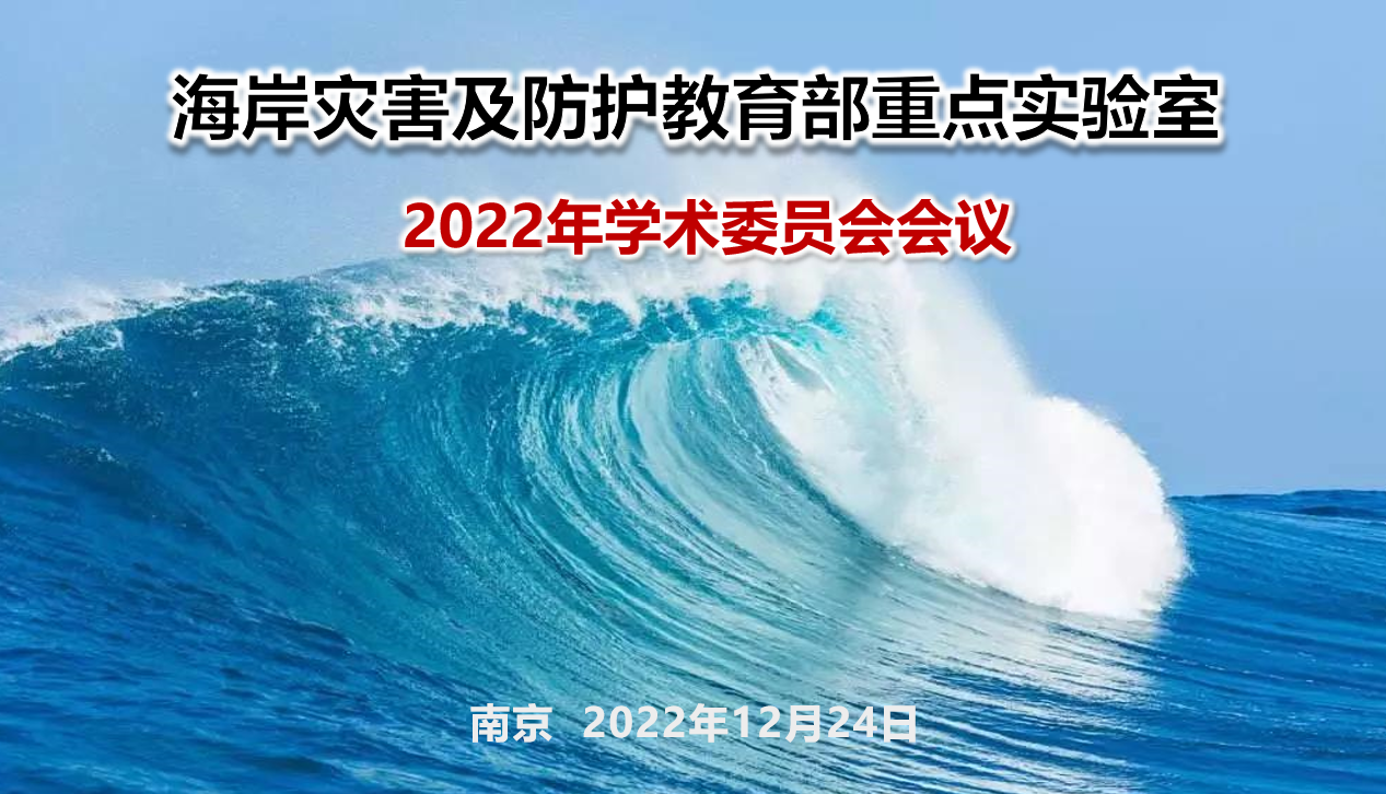 2022年12月24日,海岸灾害及防护教育部重点实验室学术委员会会议以视频方式召开。学术委员会主任李华军院士、副主任于福江研究员、副主任蔡锋研究员,委员董国海教授、林鹏智教授、余锡平教授、刘玉明教授、刘桦教授、刘海江教授和窦希萍教高等出席会议。开云电竞网科技处处长王锦国教授介绍了与会委员、依托单位领导、相关学院负责人和教育部重点实验室参会人员。开云电竞网副校长、教育部重点实验室主任郑金海教授、实验室副主任和依托单位有关学院负责人以及实验室各研究方向学术带头人、部分科研骨干参加了会议。