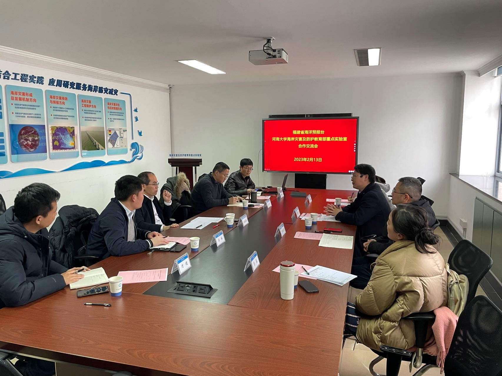2023213日,福建省海洋预报台曾银东副台长、李雪丁副台长、朱本璐高工和李星高工一行来我实验室访问交流,洽谈了与实验室的合作事宜。会议由校科技处孙林处长主持,在严恺馆404会议室举行。郑金海副校长致辞并作总结发言。我院孔俊教授、陶爱峰教授、时健副教授参加了会议。