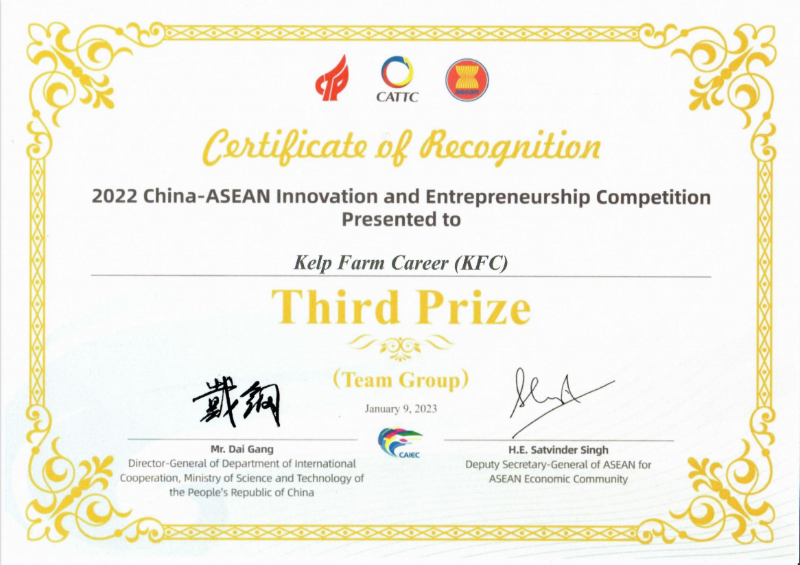 我实验室指导的“Kelp Farm Career”团队获2022年中国—东盟创新创业大赛总决赛三等奖