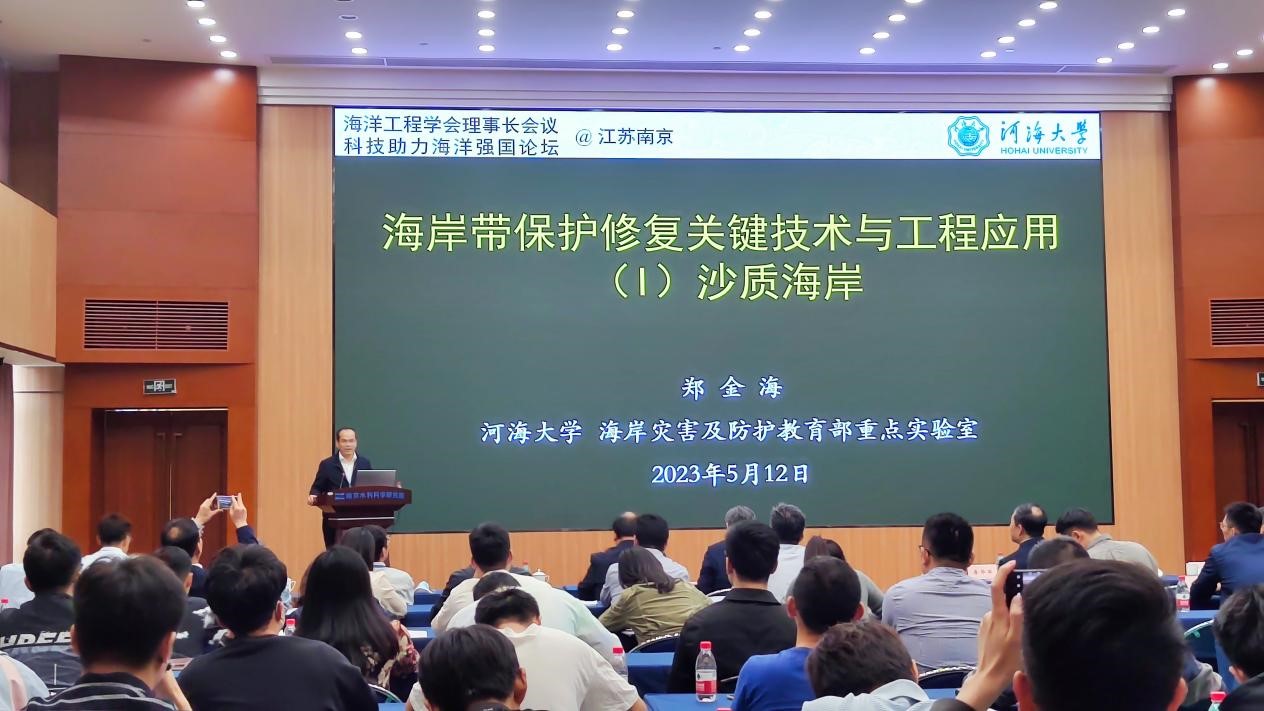 2023年5月12日下午,我实验室主任郑金海教授应邀参加了在南京水利科学研究院举办的大国重器-科技助力海洋强国论坛,作了题为“海岸带保护修复关键技术与工程应用(1)沙质海岸”的特邀报告。报告会由中国工程院胡亚安院士主持。