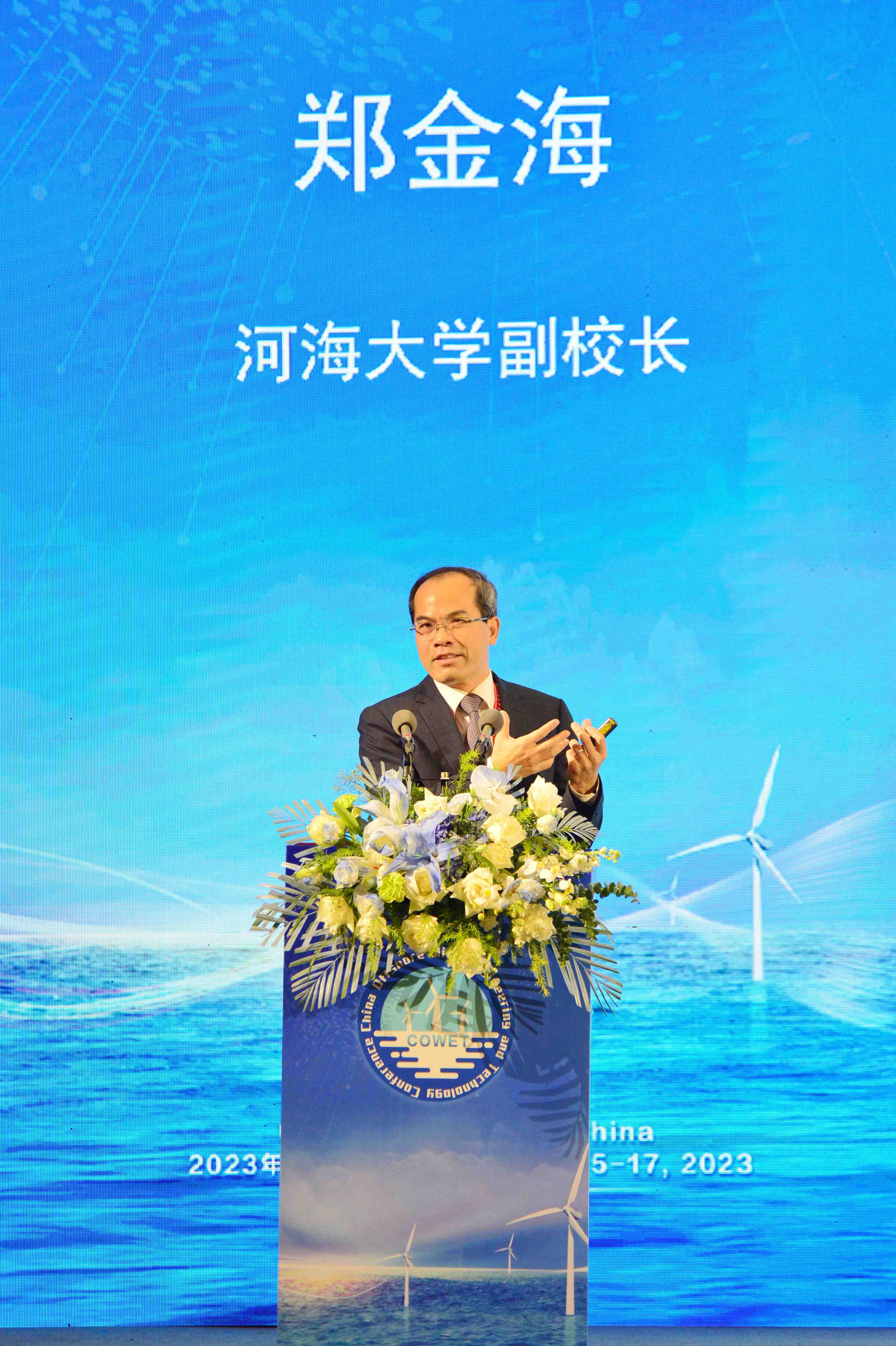 会上,郑金海教授应邀作了题为“海上风机基础冲刷防护技术研究”的大会报告。他从海上风机基础冲刷防护所面临的技术挑战、冲刷核心物模试验装备研发、复杂动力荷载环境下冲刷机理、冲刷韧性防护技术与应用、未来研究前沿与展望等五个方面阐述了其团队在风机冲刷防护领域的最新研究成果与技术创新,为海上风电行业降本增效与可持续发展提供了宝贵的思路。参会同仁在会议期间讨论热烈,进行了深入的学术交流。