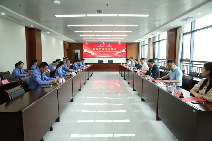李祎恒副院长与仲军检察长在双方参会人员的见证下签订了检校共建协议,刘成钢书记与仲军检察长进行了检察实践教学基地揭牌仪式。