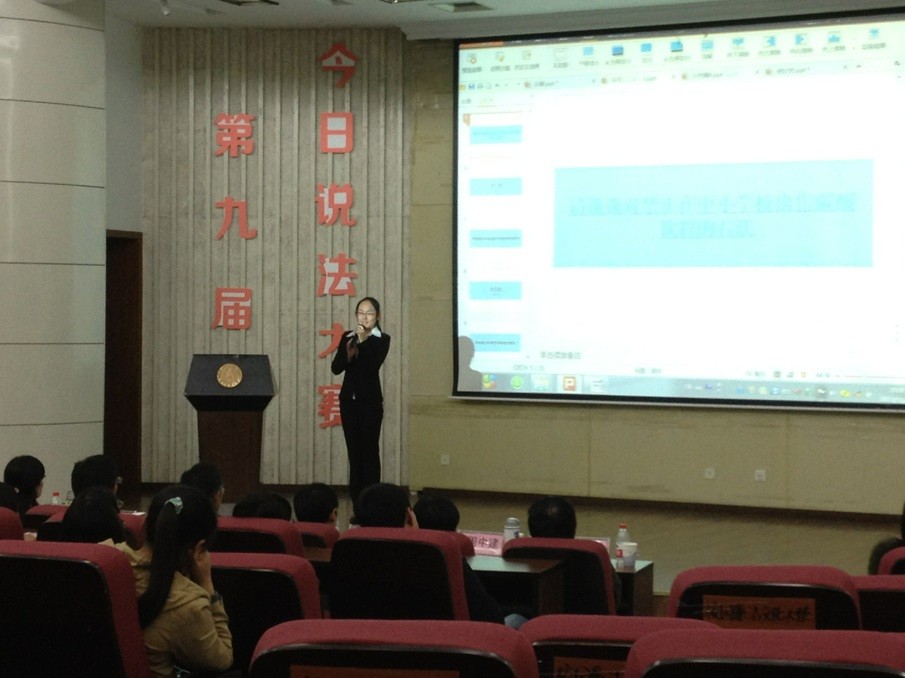 比赛的第二阶段,则由主办方从最近的时事热点中选取若干条与法律有关的实况新闻,请各参赛队伍派一名代表按照第一阶段的得分排名情况上台随机抽取题目,在进行短暂准备后当场发表对该法律热点问题看法的陈述。在11月20日进行的比赛中,我院代表闫鹏佳同学以其充分的准备、从容的姿态和优雅的谈吐征服全场。最终,经综合计算和评定,在由南京理工大学、开云电竞网、南京农业大学、南京师范大学、南京林业大学、南京信息工程大学、南京财经大学、南京审计学院等八校参加的这届赛事中,我院学子不负众望,获得冠军!