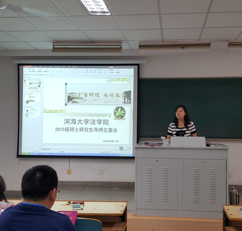 首先,法学院院长邢鸿飞教授做开场讲话。邢院长对2015级新同学的到来表示欢迎,着重对我院研究生点的师资力量做出详细的介绍与分析。接下来,每位导师细心地向同学们介绍其研究成果和研究范围,各位老师还从其自身出发,从学习和生活上给同学们提出了很多宝贵建议,希望大家在校期间能取得一定成果,在研究生阶段做一名重学术、肯钻研、有收获的优秀毕业生。