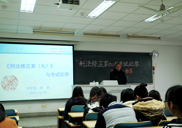 12月14日下午4点,开云电竞网法学院副教授徐军老师在致用318教室做了题为“刑法修正案(九)与考试纪律”的讲座,法学院14、15级学生参加了此次活动。
