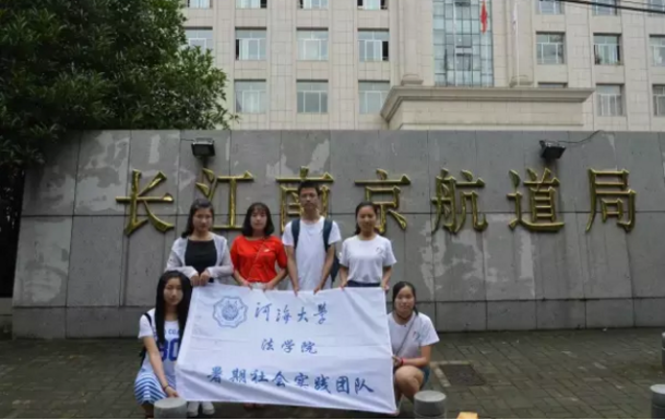 这是一支校级队伍,共七名同学,分别是唐顺莉(队长)、汪露依(副队长)、王妍、姜文静、陈彦儒、刘波和金梦娜。项目名称为:长江航道辖区交界处的非法渔业设施管理争端的相关法律问题研究——以南京新河口为例。这一小组在前期的调查中了解到在航道辖区交界处常常出现管理部门模糊,管理权限不清的问题,容易导致三不管现象,对航道正常运行和百姓生活产生重大影响,引起巨大的国家和公民利益损失。于是这一小组决定以航道辖区交界处的非法渔业设施管理争端为基点研究辖区交界处的管辖争端产生原因以及影响,进一步从法律思维的角度提出建议与解决方法。