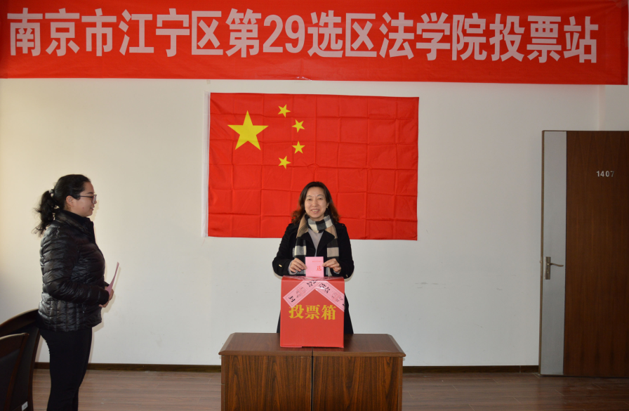 开始投票后,选民们通过阅读张贴在法学院投票站门口的选举办法、注意事项和本届江宁区人大候选人张雪刚和吴峰的个人情况简介,了解到了本次选举的基本信息。选民进入站点后,监票人核对选民身份,分发选票,并引导选民到写票处填写选票。选民填写完成后,把选票放入投票箱,在国旗下投下神圣而庄严的一票。选举结束后,在监票人的监督下,计票人进行当场验票,认真负责的完成了对选票的统计工作。此次选举情况,我院已按照法律有关规定进行上报,待上级确认后正式公布。