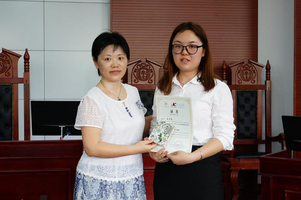 最后,由法学院副院长陈广华教授致辞。陈院长对此次讲座与模拟示范演练给予了充分的肯定,指出这是法学院第一次用全英文进行的模拟法庭活动,并为四名赴京参赛的队员颁发证书。随后,孙珺教授向参与2018年Jessup国际法模拟法庭比赛训练备赛的师生赠予了纪念品,以示感谢与鼓励。