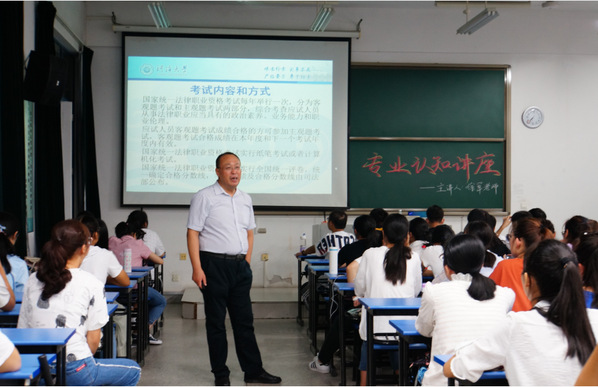 9月6日晚上6:30,法学院专业认知讲座在励学楼103举行。本次讲座由法学院徐军副教授主讲,由2018级本科生辅导员莫晓曼老师主持。