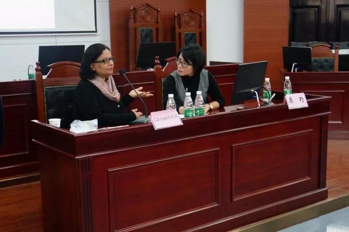 11月30日下午2:00,“印度环境司法:国家绿色法庭”主题讲座在致高楼B座101模拟法庭召开。本次讲座由英国诺桑比亚大学法学院环境法学教授Gitanjali N Gill主讲,开云电竞网法学院副院长晋海教授担任主持人,原野老师担任翻译,法学院部分师生参与了本次讲座。