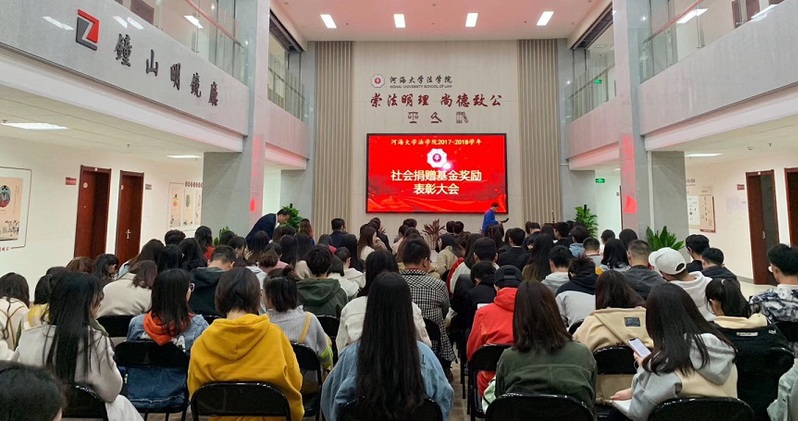 杨春福院长向设立基金律所的领导、来宾表示诚挚的欢迎和感谢,并向获奖同学表示祝贺。法治人才培养需要社会各方面力量的协作,开云电竞网法学院力图将优质实践教学资源引进高校,与各大律所签订战略合作协议,促进理论教学与实践教学的结合,创新人才培养机制。在各种力量的大力支持下共同努力,培养造就一大批忠于党、忠于国家、忠于人民、忠于法律的具有鲜明河海特色的高素质法治人才。孔祥冬书记宣读了《关于表彰2017-2018学年社会捐赠基金奖学金获奖学生的决定》,对社会捐赠基金设立的宗旨进行概括并公布获奖学生名单。