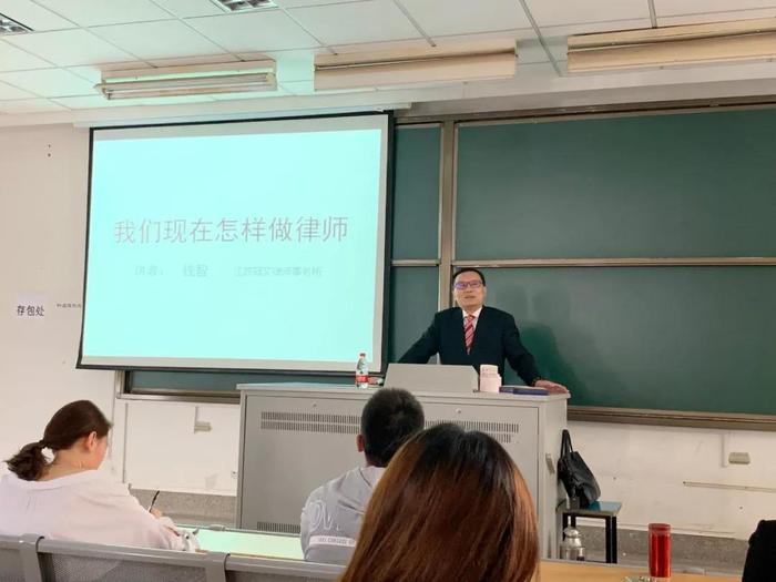 4月8日下午,江苏冠文律师事务所主任、南京市律师协会副会长钱智,受法学院副教授范艳萍老师的邀请,在2017级的法学实践课程上为同学们作了“我们现在怎样做律师”主题讲座。