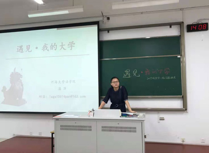 法学一班的班会由班主任潘萍老师主持。潘老师引用《大学》中的经典名言,向同学们阐述“大学之道” 的内涵,第二部分“大学之学” 则点明了大学的学习目标。潘萍老师幽默诙谐的语言激发了同学们的兴趣,同学们在倾听的过程中对于今后的大学生活有了一个比较完整的认识。