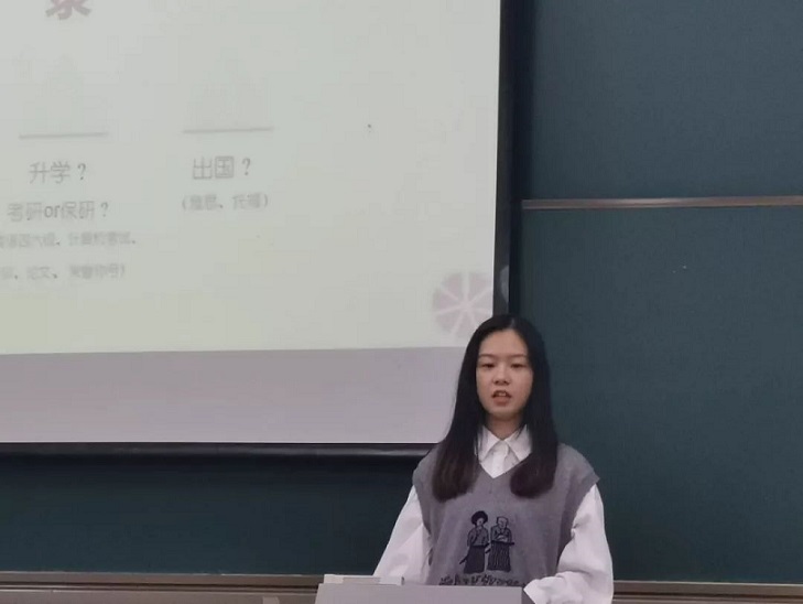 崔梦雪同学就个人目标、时间的协调与安排、学习经验三方面进行了交流。她指出了同学们毕业后可能的发展方向,建议同学们积极参与社会工作来提升自己的能力,并推荐了一些有意义的书籍。她也给出了关于课堂学习、课后复习以及记笔记的有效方法,希望同学们能利用琐碎的时光做有意义的事。