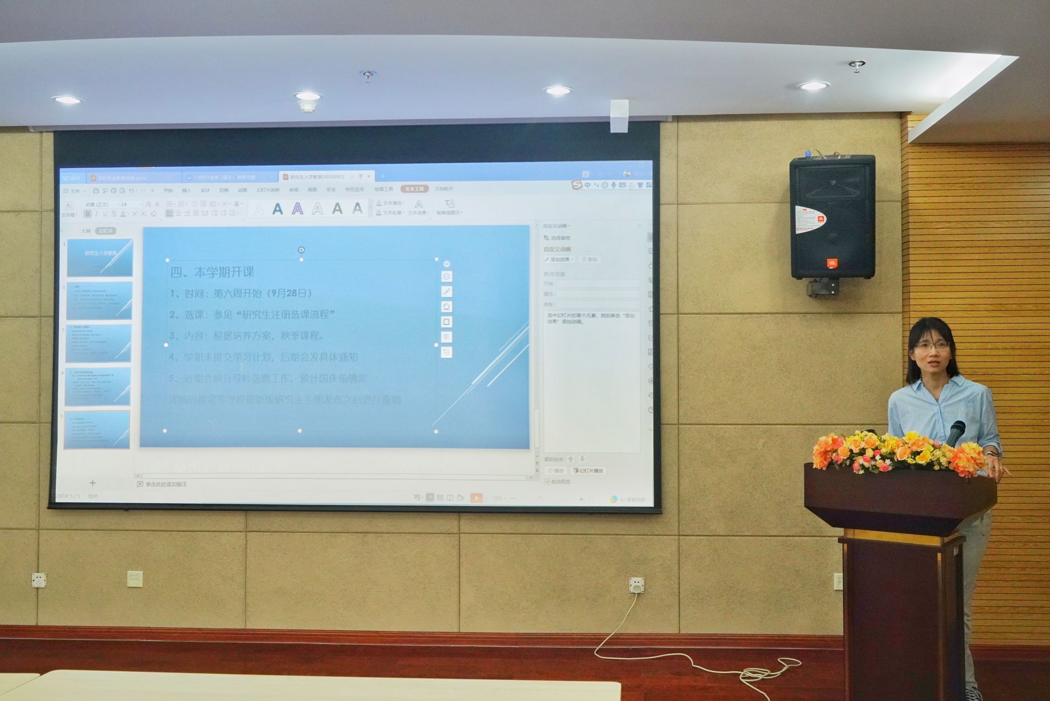 张晓红老师以研究生培养方案和论文撰写为切入点,向同学们介绍了学分与选课、选课流程、学位论文撰写流程和时间安排等内容,强调了论文查重问题、官方版本的期刊范围以及论文发表的时限问题,使同学们对未来三年研究生生活有了更为清晰的安排与规划。张晓红老师也建议同学们尽量在第一学年修完学分以便提前着手准备小论文,同时也要多阅读和加强身体锻炼。