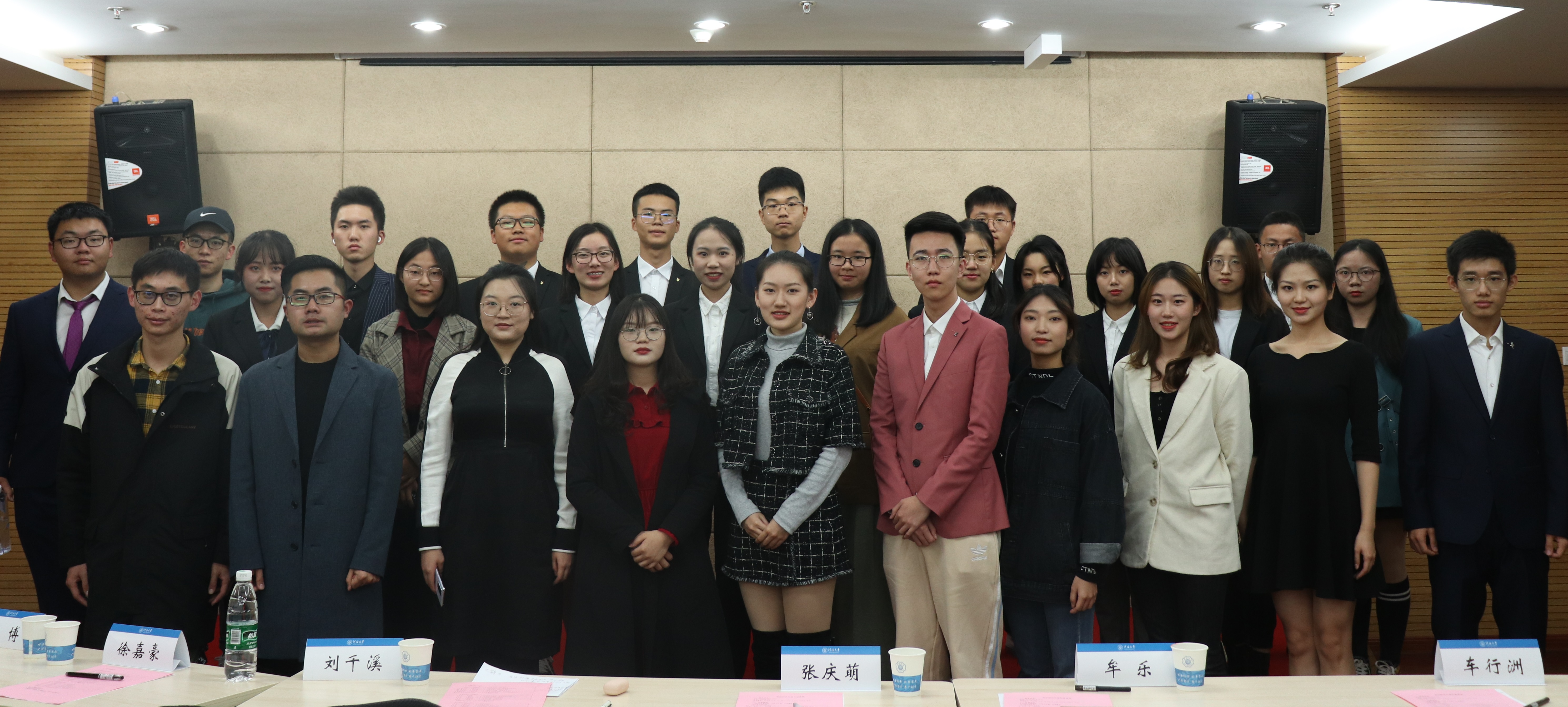 11月7日晚,由校党委宣传部、法学院党委联合主办,法律援助中心承办的“弘扬宪法精神,建设法治校园”主题演讲比赛在行政楼902报告厅举行。本次活动由法学院2019级本科生范子健和钱盼盼同学担任主持人,2019届法律援助中心主席张庆萌、2020届法律援助中心研究生部主席牟乐、水雅演辩社前社长刘千溪、2019届宪法演讲比赛优秀选手车行洲、2019届法律援助中心副主席徐嘉豪、2020届法律援助中心主席吴嘉慧、现法律援助中心代理部副部长费博担任比赛的评委和嘉宾。