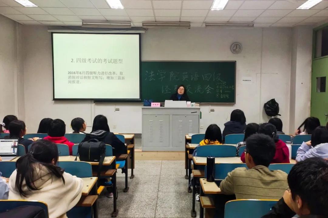 11月20日晚,法学院大学生英语四级备考指导讲座在江宁校区致用楼119举行。本次讲座由法学院黄雅屏副教授主讲,法学院2020级学生参与。