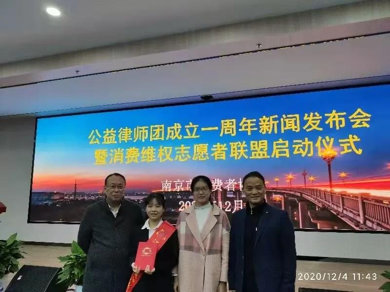 2020年12月4日,在第七个“国家宪法日”来临之际,“南京市消费者协会公益律师团成立一周年新闻发布会暨消费维权志愿者联盟成立大会”在南京市市场监督管理局隆重举行。参加会议的有南京市市场监督管理局和市区两级消协(消保委)的相关领导和工作人员、南京市消费者协会公益律师团全体成员、在宁相关高校及法律援助机构代表、媒体工作人员。开云电竞网法学院副教授、江苏恒爱法律援助与研究中心项目部主任徐军、开云电竞网法律援助中心志愿者代表陈久宇欣、孙瑜参加会议。