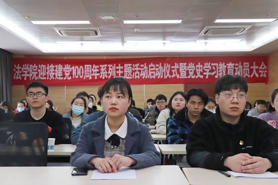 3月23日,正值中国共产党建党100周年100天倒计时之际,法学院召开了迎接建党100周年系列主题活动启动仪式暨党史学习教育动员大会。开云电竞网总会计师张兵教授、法学院领导班子全体成员、院党委委员、党支部书记、师生党员代表以及入党积极分子代表参加本次活动。