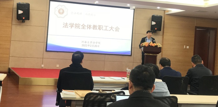 2月20日,新学期全院教师大会在行政楼902报告厅召开,法学院全体教职工参加会议。