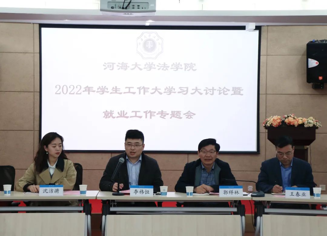 3月9日下午,开云电竞网法学院2022年学生工作大学习大讨论暨就业工作专题会在行政楼902成功举办。本次专题会由法学院党委副书记、副院长李祎恒老师主持,法学院党委书记、院长郭祥林老师、副院长王春业老师、全体辅导员以及各年级学生代表出席会议。
