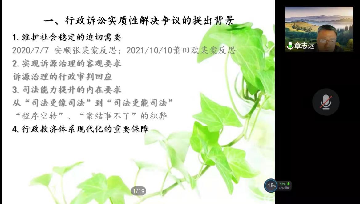 3月28日晚,以“行政诉讼实质性解决争议的法理与构造”为主题的线上讲座成功举办。华东政法大学教授、博士生导师章志远就行政诉讼实质性解决争议的相关理论与实践问题,为法学院师生做了一场理论深厚、内容精彩的演讲。法学院副院长王春业教授主持了讲座。