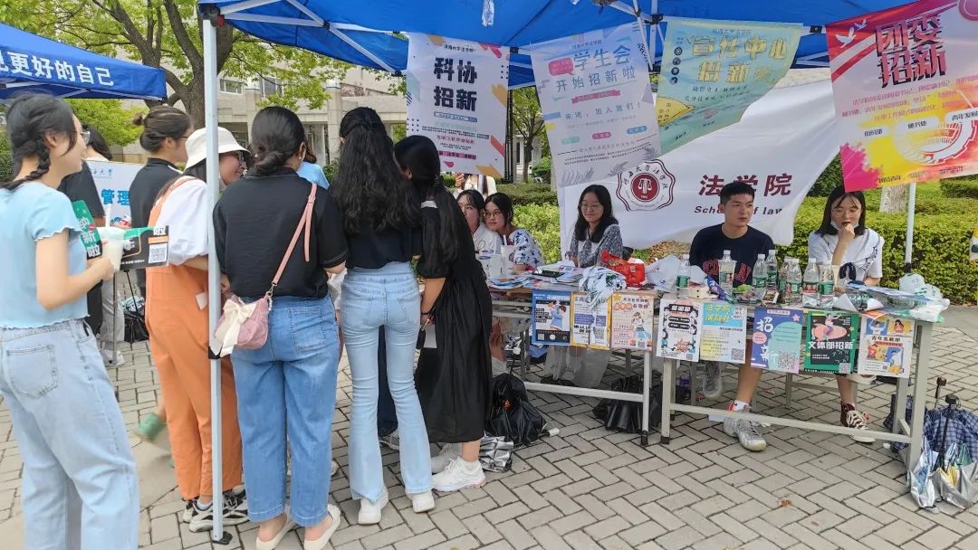 9月3日下午,法学院四代会各部门负责人早早来到小浪底广场进行招新摊位布置。招新现场热火朝天,22级新生纷纷来到摊位前,向负责人咨询学生组织信息。负责人们积极回答相关问题,分发独具部门特色的宣传单,建立线上群,进一步向同学们介绍部门详情。