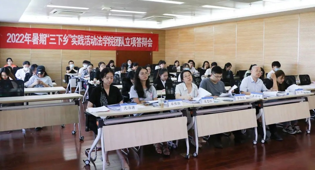 6月15日,2022年暑期“三下乡”实践活动法学院团队立项答辩会在行政楼902举行,本次立项答辩会由21级张琳玉同学主持,法学院党委副书记、副院长李祎恒副教授、院长助理吴志红副教授、法学院民商法研究所王启辉老师、法学院团委书记石依依老师、辅导员沈洁漪老师、高玉老师担任评委。