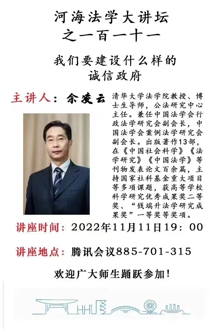 讲座预告:河海法学大讲坛之一百一十一:我们要建设什么样的诚信政府