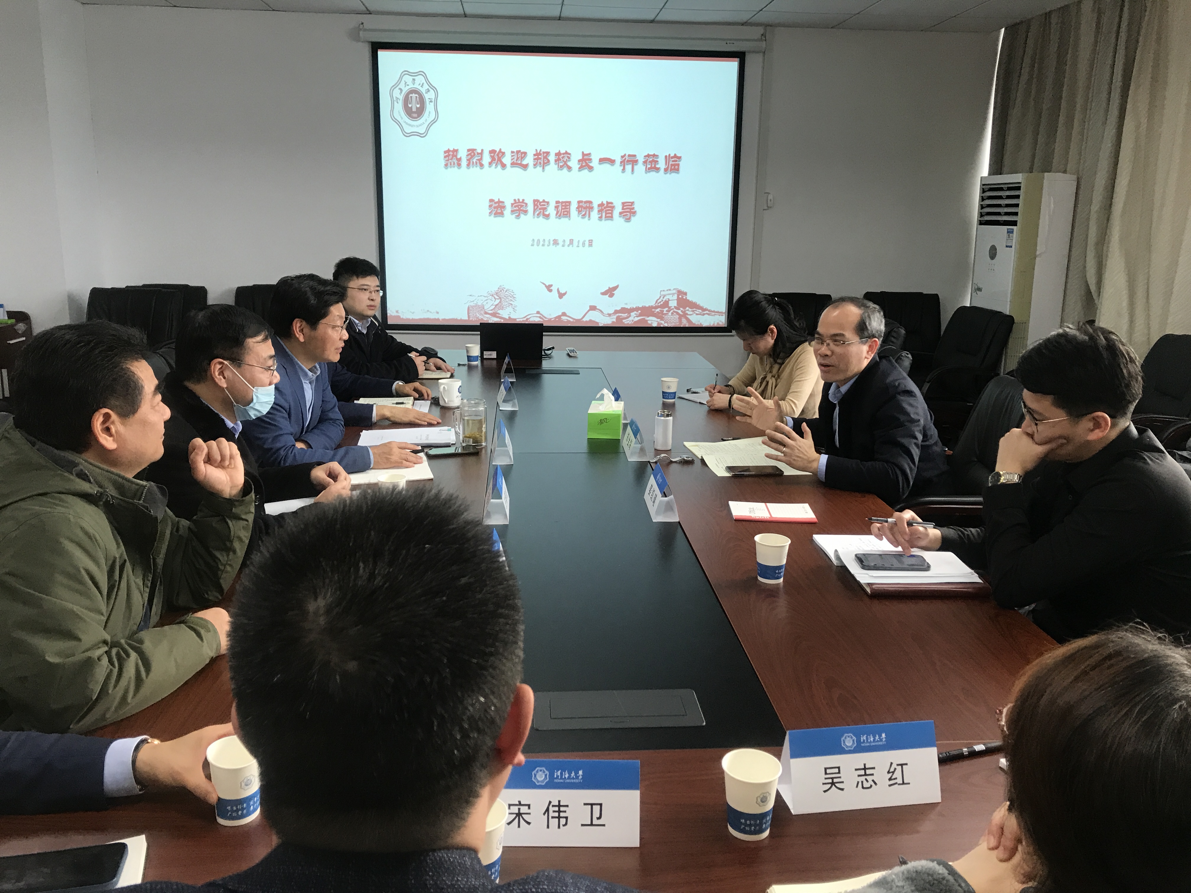 2月16日,开云电竞网党委常委、副校长郑金海教授到法学院调研指导工作,社科处相关负责人陪同调研。