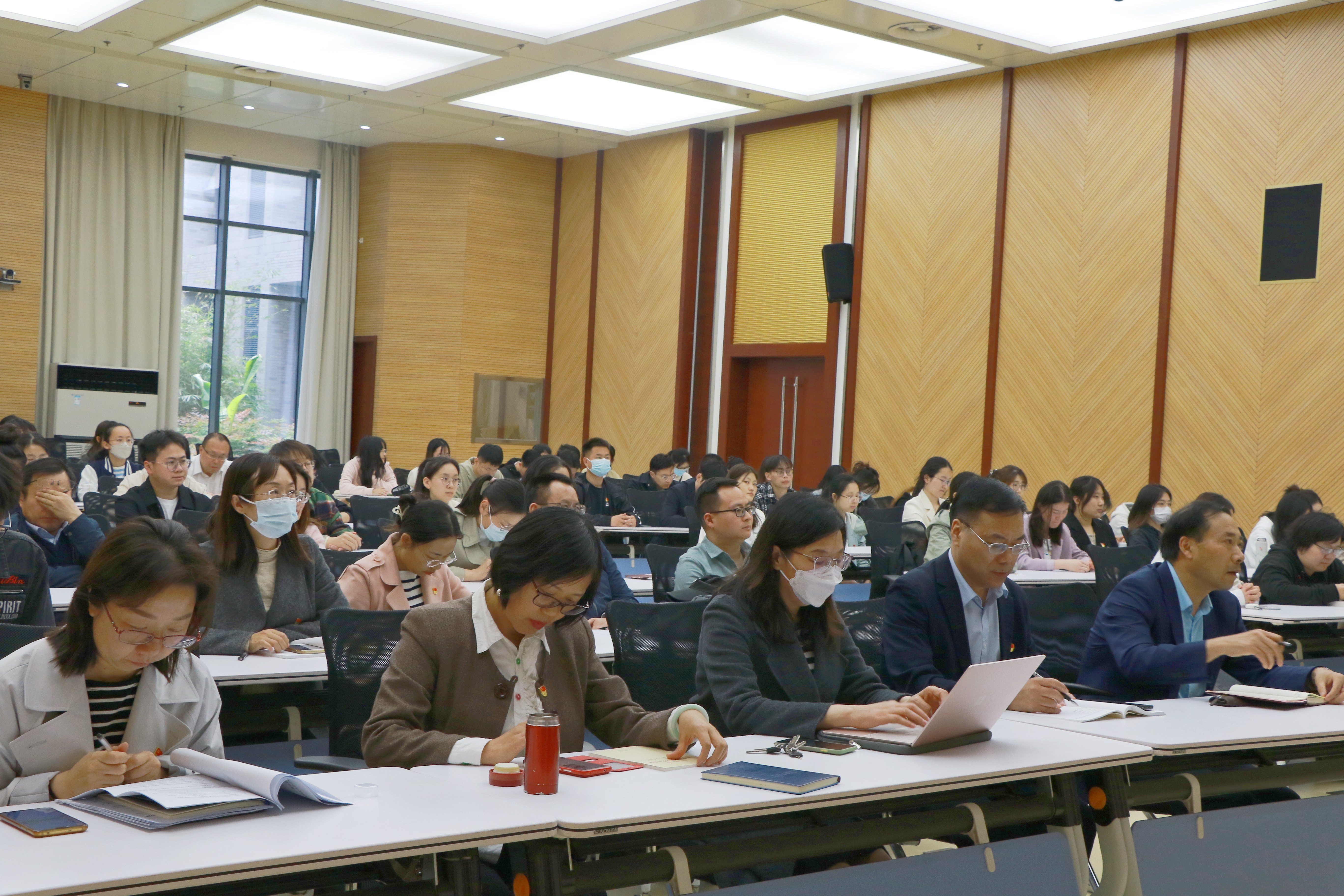 院党委郭祥林书记围绕主题教育重要意义、具体工作安排和确保教育实效三个方面对主题教育进行全面动员和工作部署。要求全体师生党员深刻领会主题教育重大意义,用习近平新时代中国特色社会主义思想统一思想和行动;准确把握目标任务,把“学思想、强党性、重实践、建新功”的总要求贯穿主题教育全过程各环节,强化理论学习,深入调查研究,统筹做好推动发展、检视整改和建章立制等工作,推动主题教育有力有序开展;主题教育要紧密结合教学科研管理服务日常工作,把开展主题教育作为推动学校和学院事业发展的有力抓手,确保主题教育走深走实。(供稿:陈文琪;审核:郭祥林)