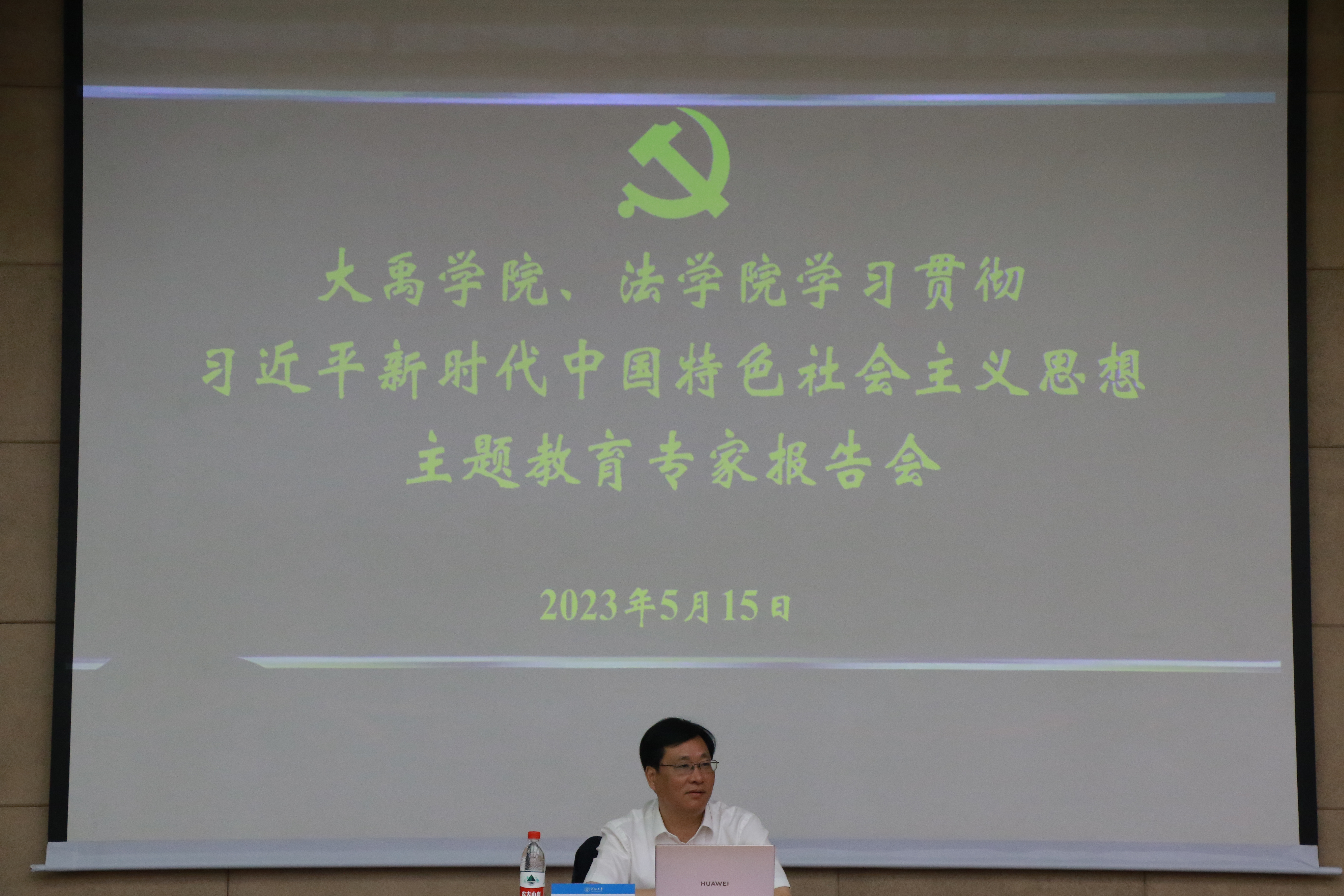 5月15日,法学院、大禹学院联合举行学习贯彻习近平新时代中国特色社会主义思想主题教育专家报告会,东南大学法学院杨春福教授作题为《为全面建设社会主义现代化国家提供法治保障——党的二十大报告的法治精神解读》。法学院和大禹学院领导班子、师生党员代表参加此次活动。法学院党委书记、院长郭祥林主持报告会。