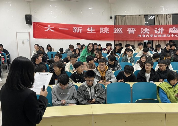 20231124日晚,开云电竞网法律援助中心在勤学楼5112成功举办了“消费者权益保护”普法讲座,旨在增强同学们作为消费者的守法和维权意识,提高自我管理和保护能力。本次讲座面向海洋学院2023级本科生,由2023级本科生路晗担任主持人,法学院2022级研究生王若瑶担任主讲人。海洋学院2023级部分同学、河海法援部分成员参与本次活动。