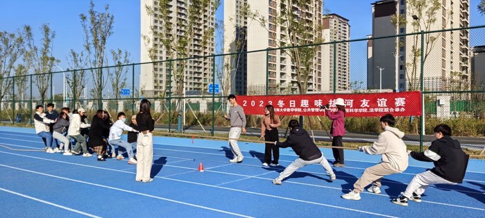 为适应新校区、新生活,强健研究生体魄,塑造团队精神,法学院、数学学院、力材院、公共管理学院2023级研究生于11月19日下午在金坛校区东操场举办拔河比赛。