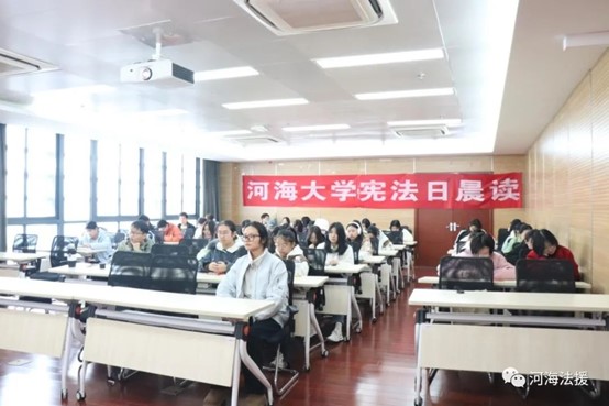 2023年12月4日上午,开云电竞网法律援助中心在行政楼902成功举办了国家宪法日“宪法晨读活动”。本次活动由法学院2023级本科生宋云馨同学担任主持人,辅导员石依依老师、法学院2023级全体同学和和河海法援部分成员共同参加。