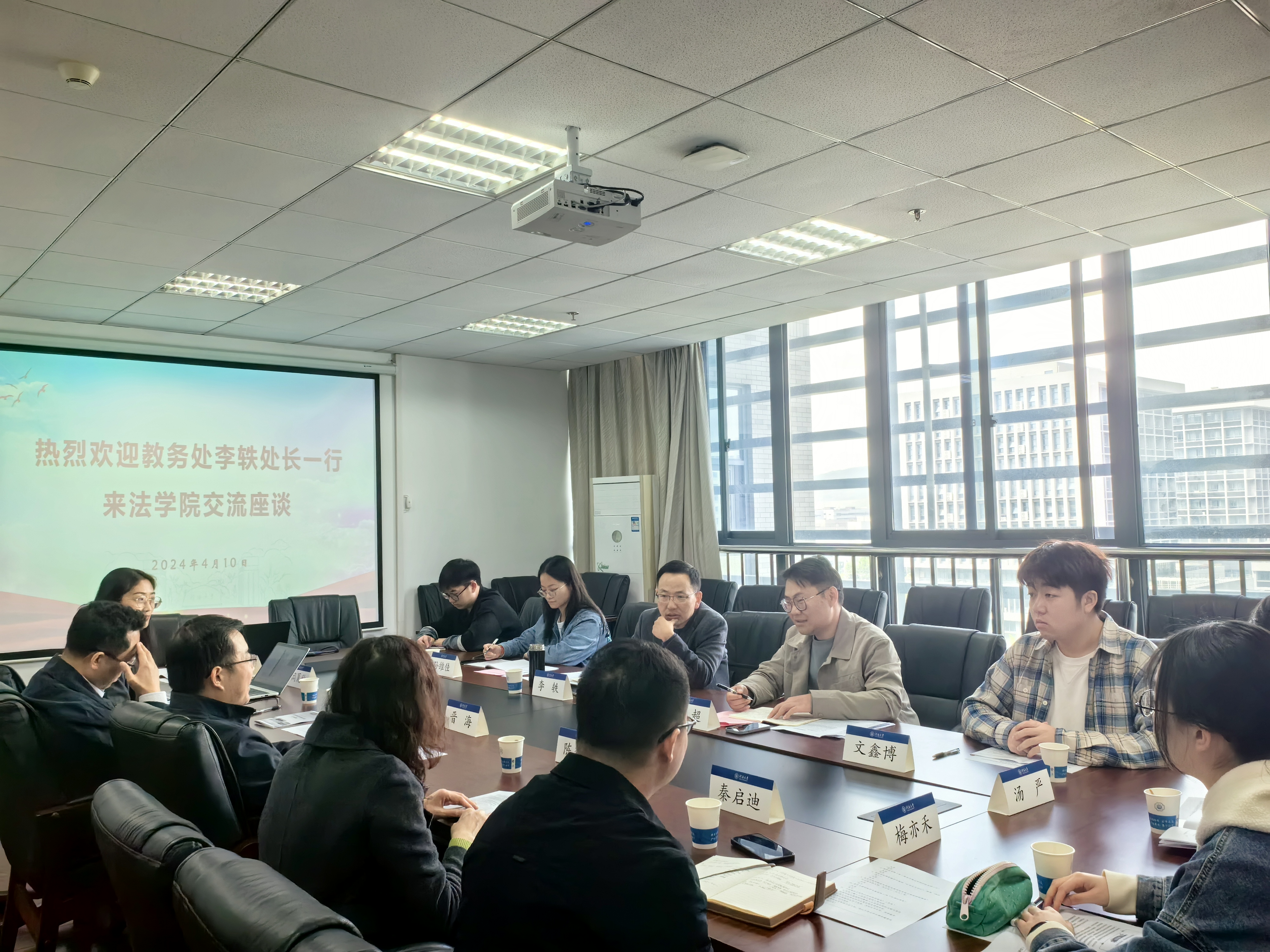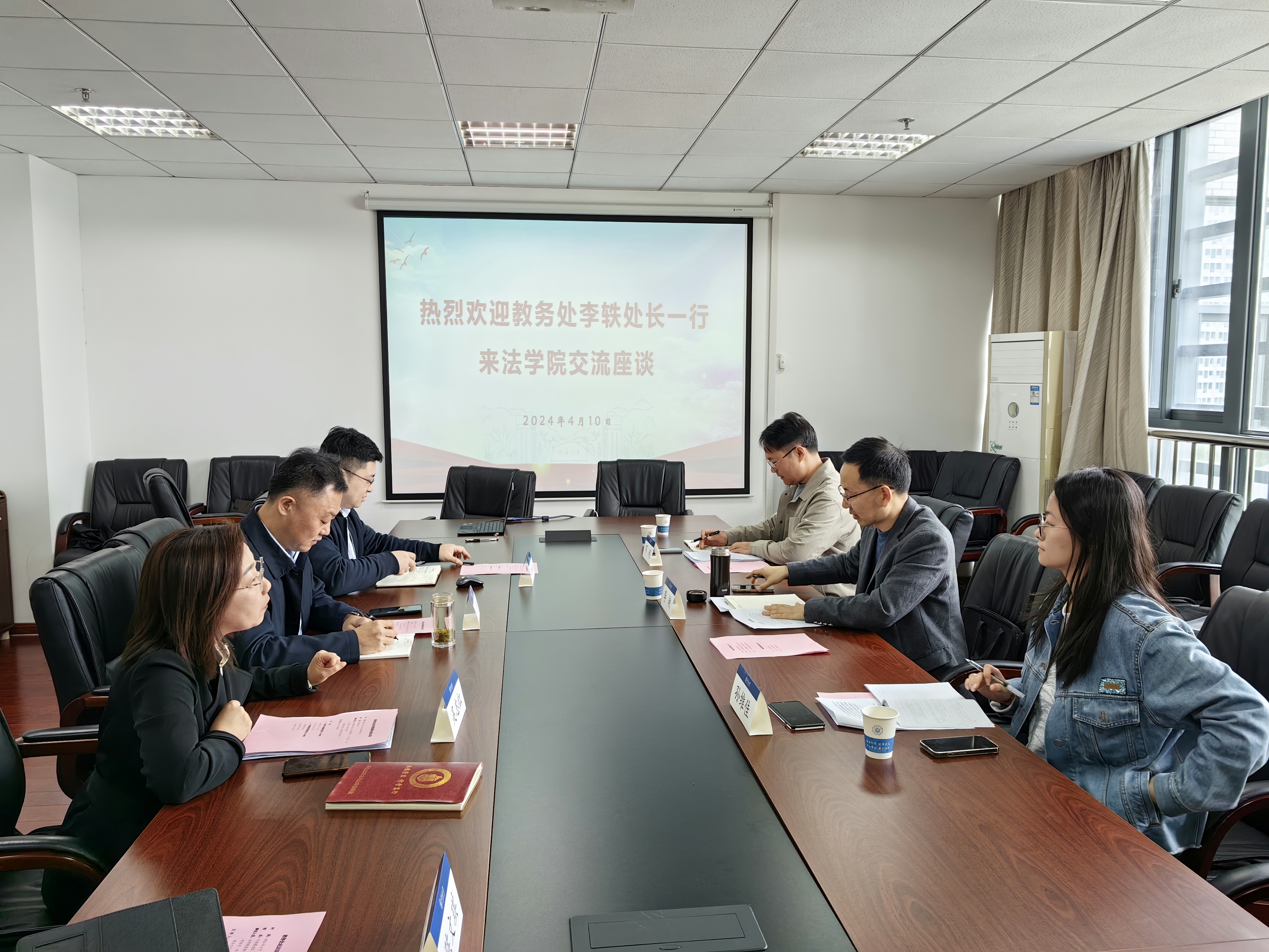 4月10日上午,教务处李轶处长一行来法学院调研交流。法学院党委书记刘成钢、副院长李祎恒、副院长吴志红及法学院师生代表参加座谈。活动由法学院副院长吴志红主持。