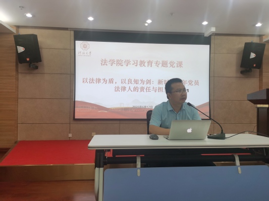 为做好毕业生党员思想教育工作,坚定毕业生党员法治信仰,6月12日下午,法学院党委副书记、副院长宋伟卫副教授讲授“以法律为盾,以良知为剑:新时代青年党员法律人的责任与担当”专题党课,法学院毕业生党员参加学习。