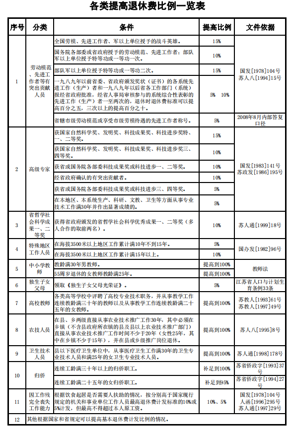 2.各类提高退休费比例一览表