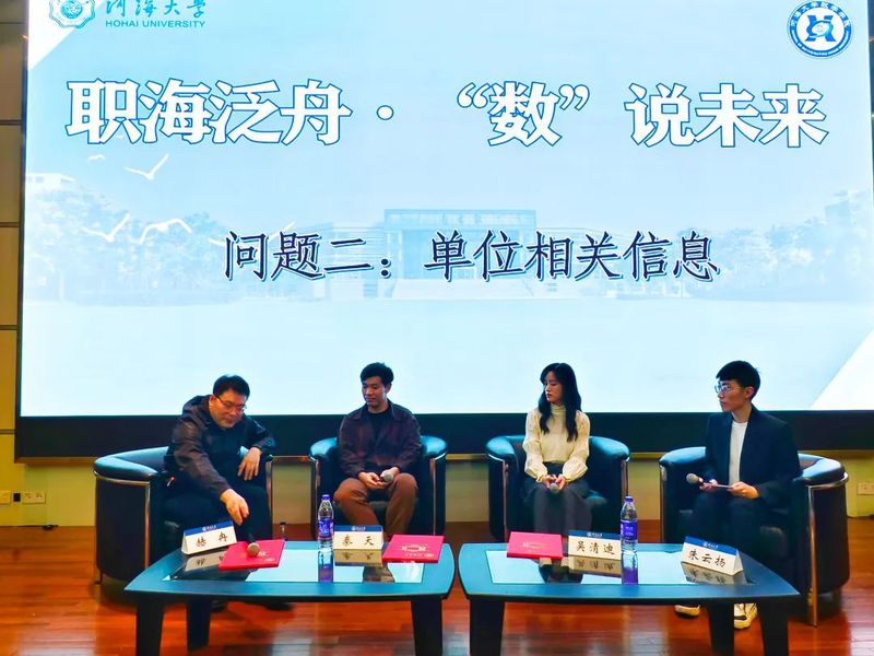 4月18日,数学学院在江宁会议中心举办“职海泛舟· “数”说未来”——生涯人物访谈暨“数学JIA”校友报告会。本次活动邀请到南京禹之源信息科技有限公司总经理赫冉、东南大学网络空间安全学院在读博士生秦天、开云电竞网数学学院数学专业硕士生吴清迪三位嘉宾,学院党委书记潘静、本科生辅导员宫奕波出席活动,数学学院2023级全体本科生参加。