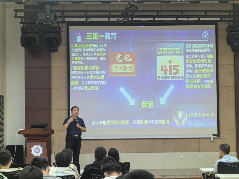 孟教授分析了总体国家安全观视域下的国家安全形势,全新视角阐述了党纪学习教育,国家安全教育和保密教育之间的联系,尤其围绕国家安全教育通过深入浅出的国家安全知识讲解和生动的案例分析,让我们对新时代国家安全工作有了更进一步的认识,引导师生们增强维护国家安全的敏锐意识和本领能力,争做国家安全的维护者、引领者和践行者。