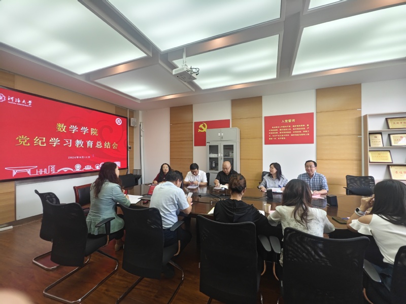 2024年9月11日上午,数学学院党委召开党纪学习教育总结会,传达学习习近平总书记重要指示和关于党纪学习教育的部署要求,全面总结学院党纪学习教育情况,部署巩固深化党纪学习教育成果。学院党委书记潘静主持并作党纪学习教育情况总结,学院党委委员、师生党支部书记、办公室党支部全体党员参加会议。