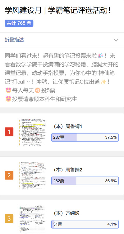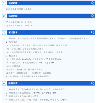 为进一步加强学风建设,营造浓厚的学习氛围,助力同学们高效掌握知识、提升学习能力,数学学院积极响应学校号召,特举办2025年“学霸笔记”评选活动。一份优秀的笔记不仅是课堂的精华浓缩,更是复习备考的得力助手。优质的笔记,恰似迷雾中的灯塔,总能在关键时刻指引学习的方向。再强的瞬时记忆,也抵不过时光的冲刷,唯有将知识落于笔尖,方能让思维的火花长存。值此学术创新季到来之际,数学学院学霸笔记活动邀你共赴这场知识沉淀与智慧碰撞的盛宴!“锲而不舍,金石可镂。”