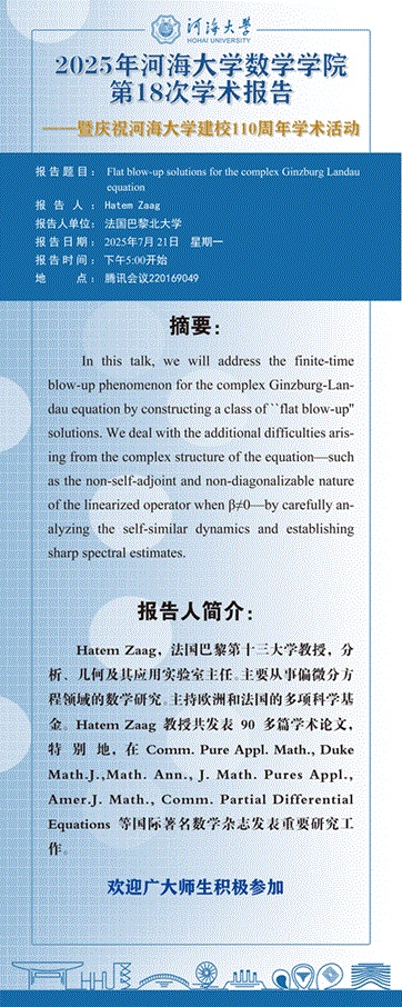 数学学院第18次学术报告:Flat blow-up solutions for the complex Ginzburg Landau equation