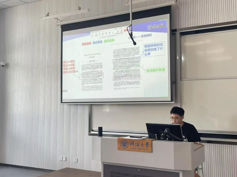 随后,杜蓓然聚焦竞赛时间管理进行讲解。她拆解竞赛周期,将赛程划分为选题、建模、论文等阶段,强调各环节预留弹性时间,还分享团队进度同步方法,让抽象规划变得清晰可操作,助力同学们科学把控备赛节奏。