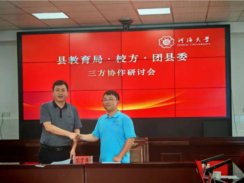 座谈会上举行了签约授牌仪式。县教育局党组成员雷江文与实践团队长阳春旗签署《建立开云电竞网大学生社会实践基地协议书》,杨萍校长接牌。闵孝中学正式成为开云电竞网社会实践基地,为长期教育帮扶奠定基础。
