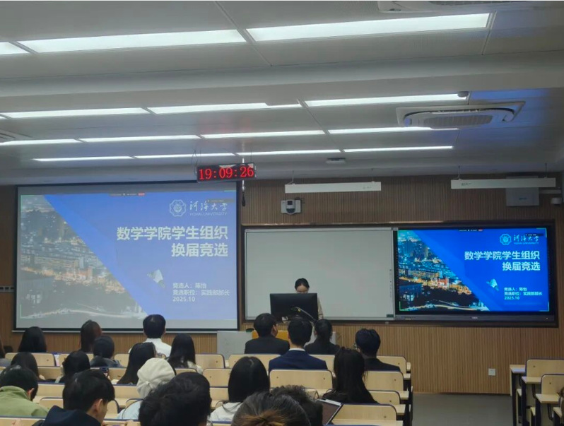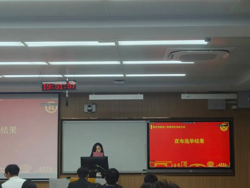 在竞选环节,十名候选人依次上台竞选发言,分别从个人介绍、工作概述、竞选优势、部门认知、工作计划等多个方面进行展示。演讲结束后,参会代表采用现场不记名投票的方式对正式候选人进行差额选举,产生数学学院第三届研究生会成员。