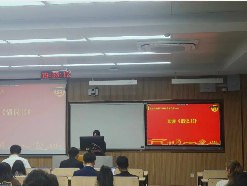 最后,由秘书部部长高秀云宣读《倡议书》,激励全院同学不忘初心跟党走,深入学习贯彻党的二十大精神,在学业和科研上勇于探索,在实践中开拓创新、锐意进取,将青春激情融入民族伟大复兴的洪流中。