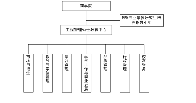 开云电竞网商学院院长对学院发展做统筹管理;学院分管研究生副院长对学院的研究生教育负责;专业学位研究生院长助理、MEM中心主任对MEM专业学位项目具体负责;MEM中心执行主任具体执行MEM项目的常规管理。MEM中心学术主任具体负责MEM项目的培养、质量等环节。MEM中心共有10名全职行政人员和2名兼职工作人员,分管招生、教务、培养、毕业、财务等事项。具体的组织结构如下图。