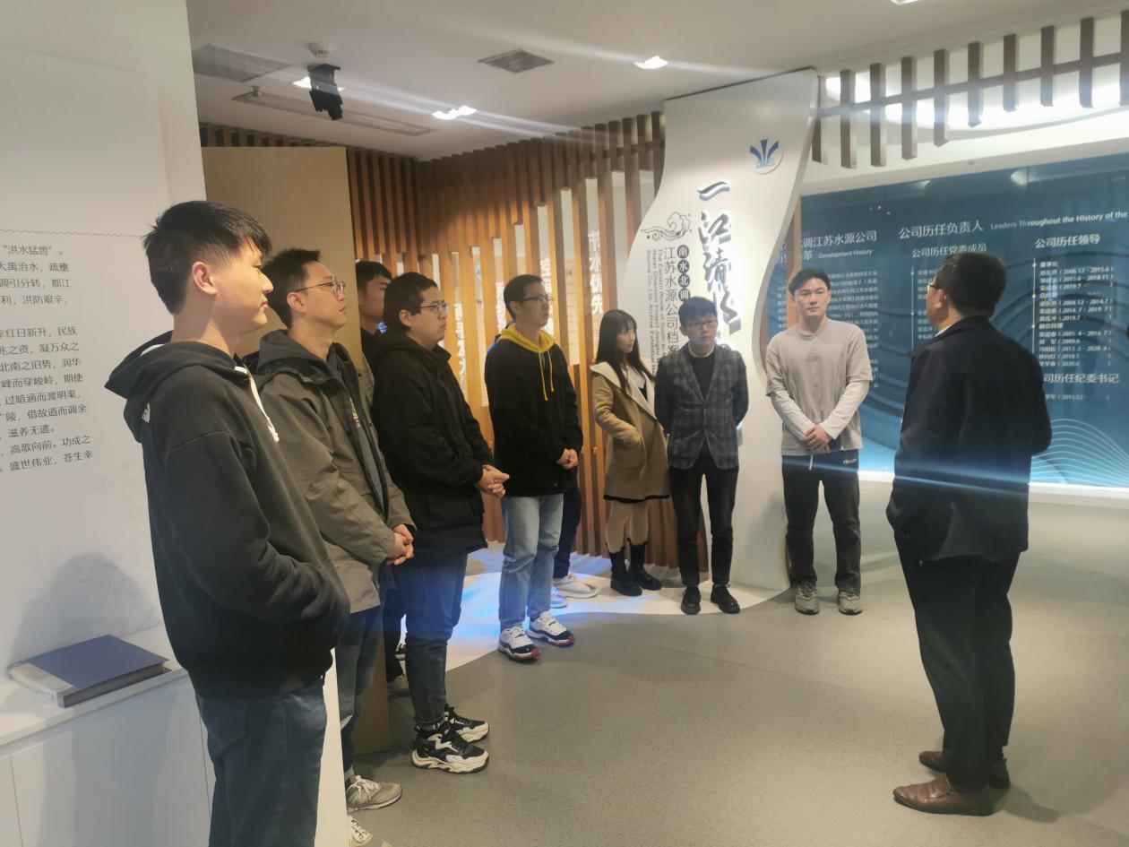 随后,师生团体在水源公司档案馆馆长王永刚先生的带领下,参观了公司档案馆陈列室,详细了解了南水北调东线工程建设过程和江苏水源公司发展改革历程,通过一张张展现人文风貌的照片、一件件凝聚着建设者心血的实物,感受“大国重器”的力量。