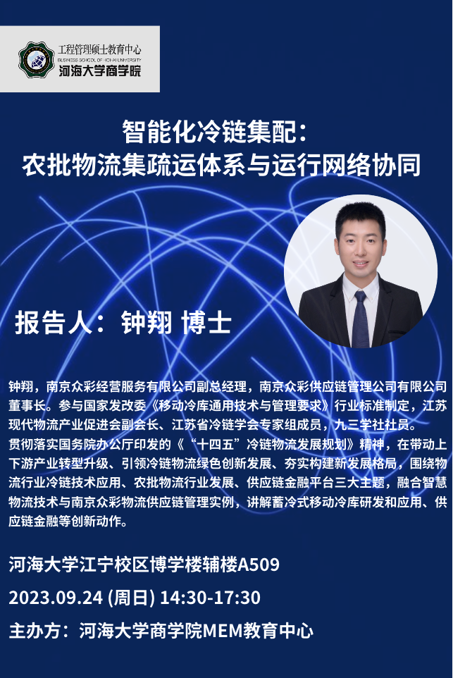 关于《智能化冷链集配:农批物流集疏运体系与运行网络协同》讲座的通知